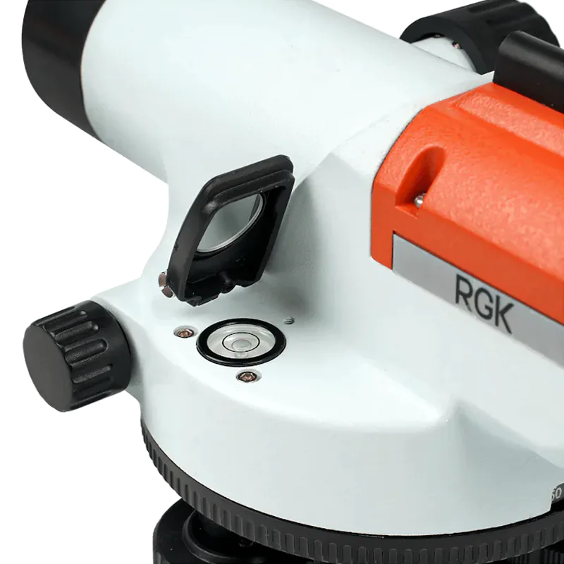 Нивелир RGK C-24 оснащен качественной оптикой, которая обеспечивает 24-кратное увеличение изображения. Минимальное фокусное расстояние — 20 см. Показатель средней квадратической ошибки на 1 км двойного хода не превышает 2 мм. Бленда защищает объектив диаметром 32 мм от повреждений. Благодаря просветляющему покрытию изображение в зрительной трубе остается четким и ярким при различных условиях освещенности.