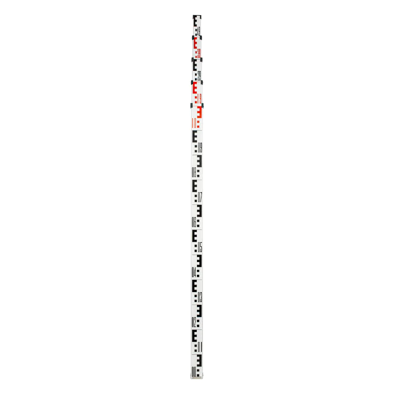 Телескопическая рейка состоит из пяти выдвижных секций. Ее максимальная длина составляет 5 м. На одну сторону нанесена Е-шкала, на другую — миллиметровая градуировка. Погрешность измерений не превышает 1 мм. Пузырьковый уровень облегчает выравнивание прибора. Для удобства переноса результатов и работы с одинаковыми высотами в конструкции рейки AMO S5 предусмотрена металлическая кнопка фиксации секций на необходимой высоте.