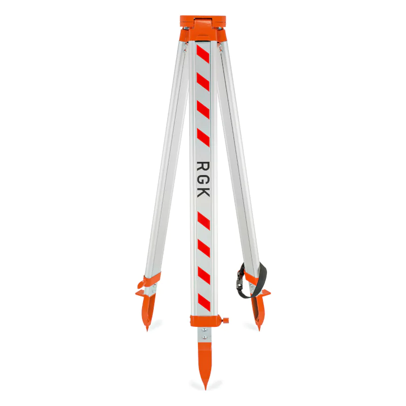 Алюминиевый штатив имеет плоскую площадку для стабильного крепления оптического нивелира. Высота телескопических стоек регулируется до 170 см, вы можете зафиксировать их с помощью винтовых механизмов на нужном уровне. При работе в полевых условиях треногу можно надежно установить, заглубив ножки с заостренными наконечниками и упорами в грунт.
