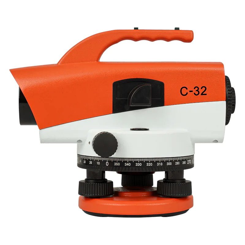 Оптическая система с 32-кратным увеличением и минимальным фокусным расстоянием 20 см позволяет работать с меньшим количеством перестановок прибора. Прямое изображение в зрительной трубе удобно для восприятия. На линзу нанесено просветляющую покрытие, благодаря которому картинка остается контрастной и четкой даже в сумерках или при плохой погоде. Нивелир RGK C-32 относится к классу точных приборов. Средняя погрешность измерений не превышает 1,5 мм на 1 км двойного хода.