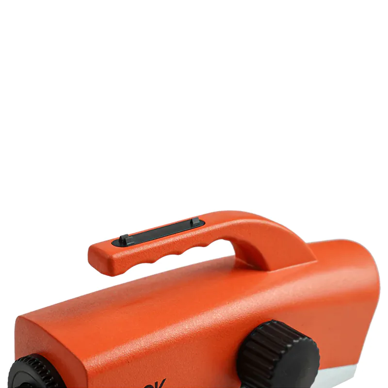 Удобная ручка упрощает переноску нивелира по объекту и установку на штатив. Сверху на ручке расположен коллиматорный визир для предварительного наведения на рейку. Бленда защищает объектив от повреждений. Верхняя часть корпуса образует козырек над зрительной трубой, улучшает видимость при работе в солнечный день.