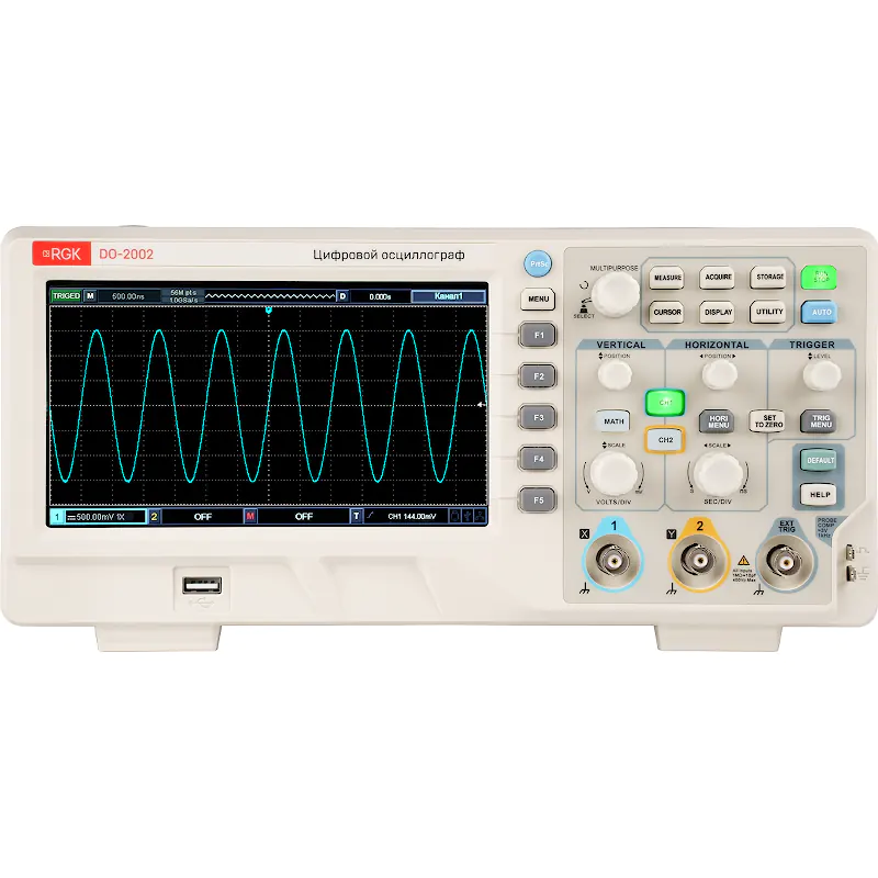 Осциллограф RGK DO-2002 поддерживает основные математические вычислительные функции с осциллограммами двух каналов. С помощью алгоритма быстрого преобразования Фурье можно проводить спектральный анализ сигналов. Для более удобного рассмотрения части кривой предусмотрен режим увеличения фрагмента. Система синхронизации позволяет определить условия запуска сигнала и обеспечить его стабильное отображение.