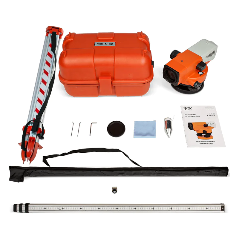 Оптический нивелир RGK N-32, рейка AMO S5 и штатив S6-N предназначены для строительных, геодезических и инженерных изысканий. Использовать комплект измерительного оборудования выгодно и удобно, при этом гарантирован более точный результат работы.