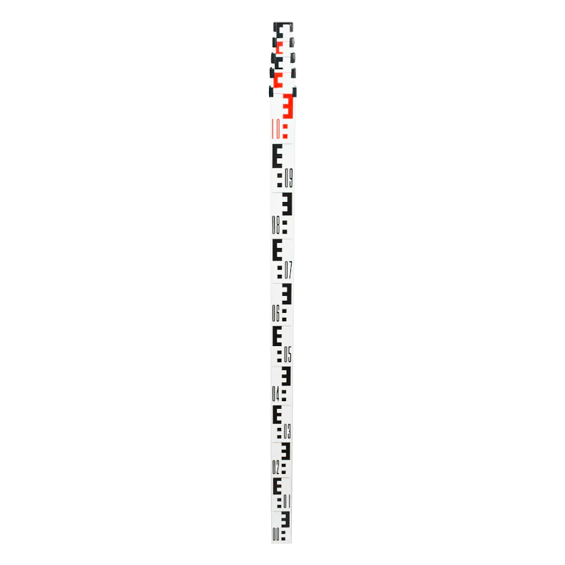 Для определения разности высот нивелир фокусируют на геодезической рейке. В этом комплекте предусмотрен измерительный инструмент, состоящий из последовательно выдвигаемых секций. Их общая высота составляет 7 м. Миллиметровая шкала и Е-градуировка хорошо считываются на большом расстоянии. Погрешность измерений не превышает 1 мм. Для выравнивания рейки RGK TS-7 по вертикали имеется пузырьковый уровень. Конструкция из алюминия устойчива к коррозии, разметка не стирается и не выгорает. Чтобы вам было удобно работать с одинаковыми высотами и переносить результаты измерений в проект, на рейке предусмотрена металлизированная кнопка для фиксации секции на нужном уровне.