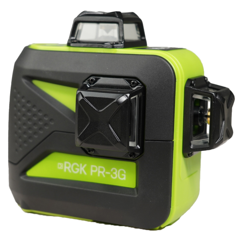Лазерный уровень RGK PR-3G излучает 1 горизонтальную и 2 вертикальные линии. Зеленый луч хорошо отслеживается даже в солнечную погоду. Развертка в 360 ° позволит работать со всеми стенами одновременно, не разворачивая прибор.