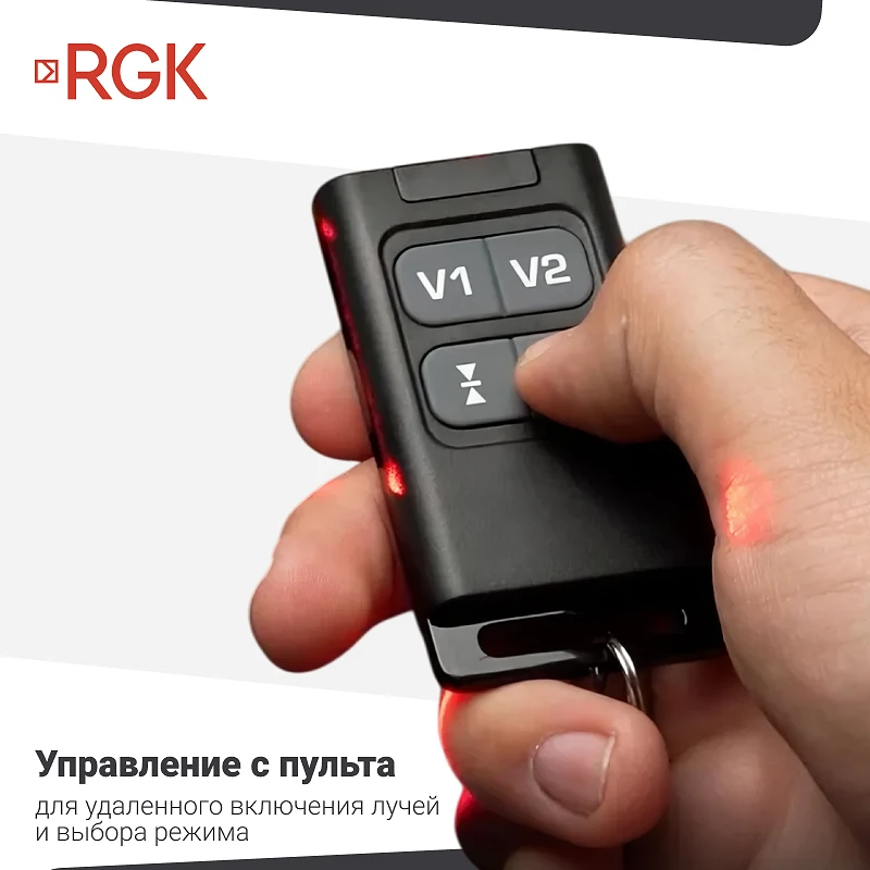 Лазерный нивелир RGK с разверткой 360° не придется поворачивать во время работы. При включении прибора проецируется одна нижняя горизонтальная линия. С помощью кнопки выбора вы легко настроите нужное сочетание лучей вплоть до двух горизонтальных и двух вертикальных. Это позволит оптимизировать расход энергии и выбрать необходимый для конкретной задачи вариант.