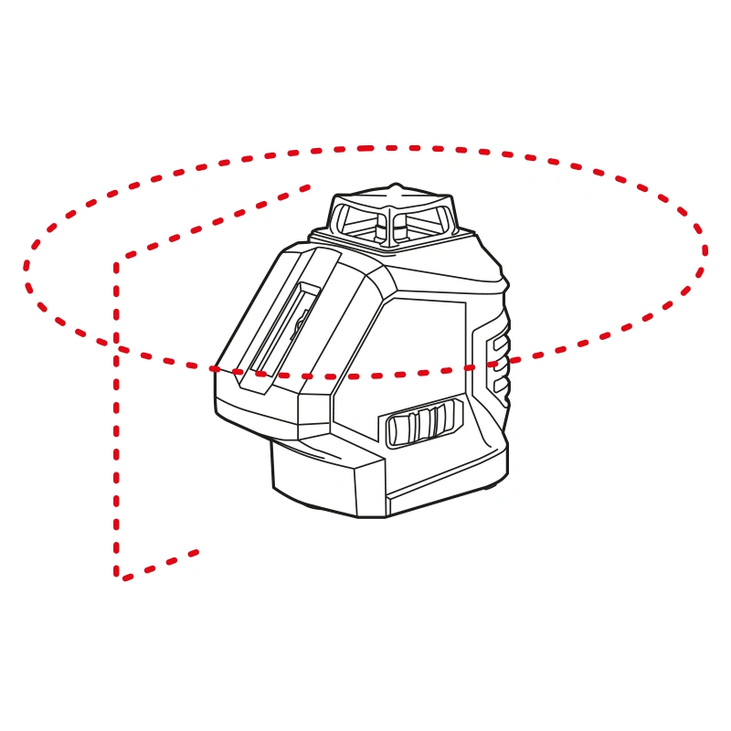 Горизонтальная проекция охватывает 360°, вертикальная — 120°. Такое покрытие удобно при установке потолков, перегородок и другой объемной разметке. Благодаря автоматическому выравниванию в пределах ±4° нивелир сразу дает ровную линию — не нужно крутить винты и ловить уровень вручную.