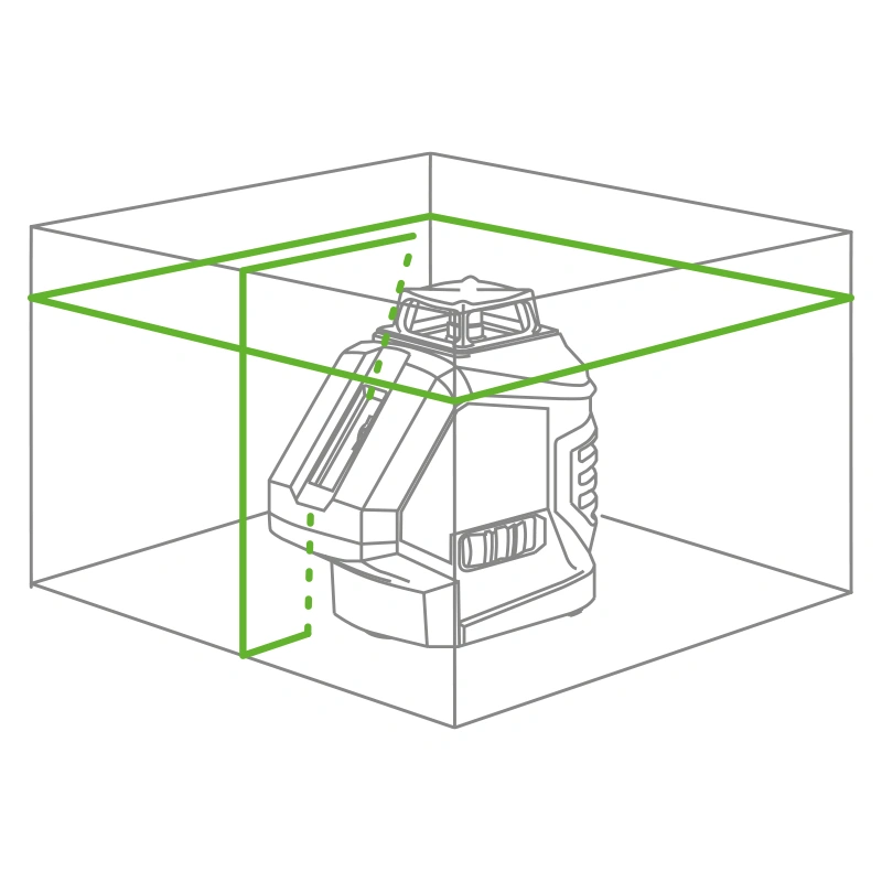Лазерный уровень проецирует горизонтальную и вертикальную плоскости с разверткой в 360 °. Линии позволят создать точную разметку для монтажных, отделочных или строительных работ. А при блокировке компенсатора модель сможет выстраивать наклонные линии.