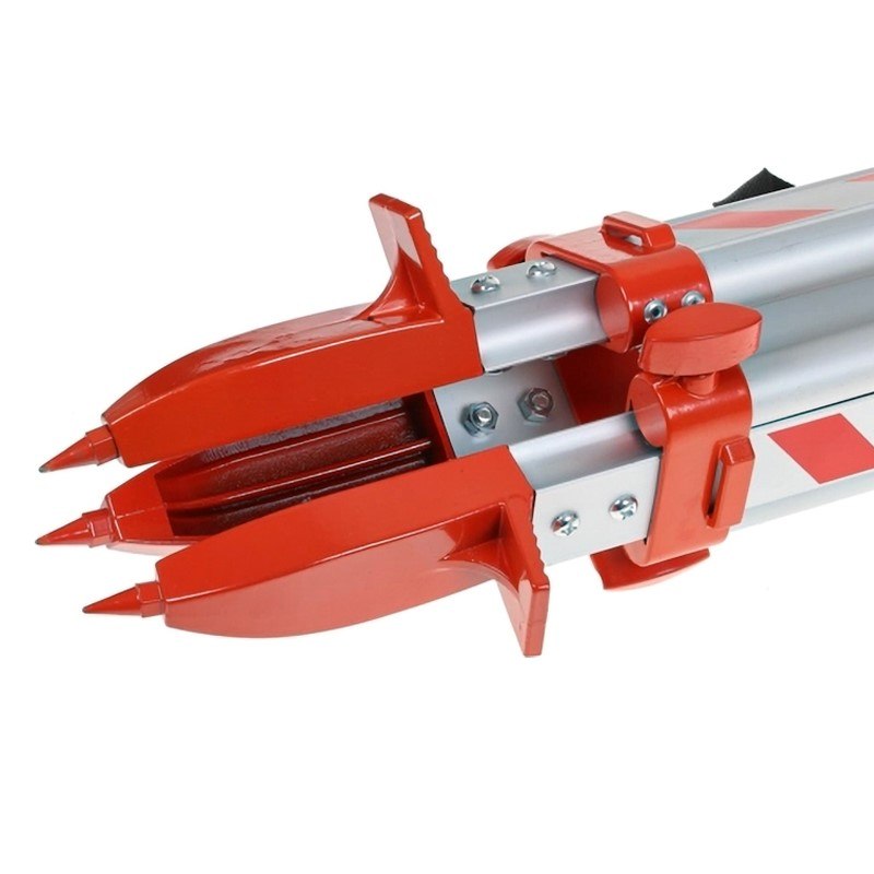 Телескопические стойки фиксируются при помощи винтового механизма. Такой метод обеспечивает надежность и стабильность установки. Ножки оборудованы прочными площадками-упорами, которые позволяют глубоко углубить заостренные наконечники даже в рыхлый грунт, обеспечивая надёжность установки прибора на штативе.