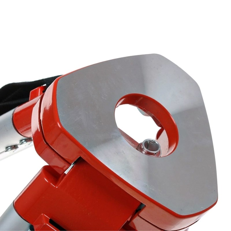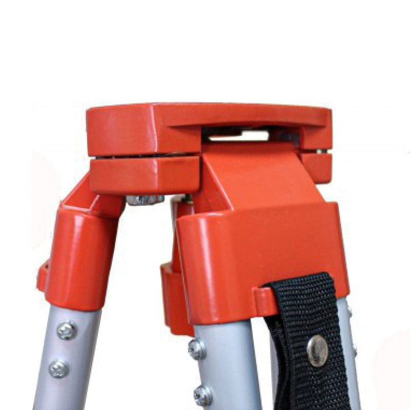 Некоторые элементы конструкции окрашены в яркий оранжевый цвет, а на стойки нанесены контрастные полосы. Такое оформление делает треногу более заметной и повышает безопасность работ на стройплощадке.