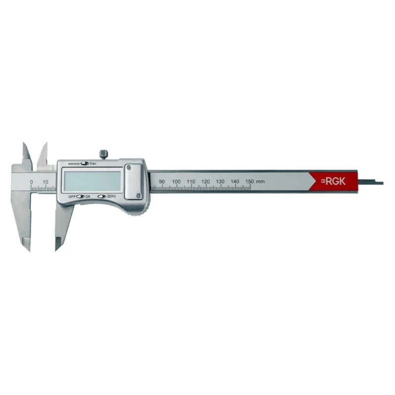 Электронный штангенциркуль RGK SCD-150 имеет регистрационный номер 95667-25 в госреестре средств измерения РФ и поставляется с действующим свидетельством о метрологической поверке. Инструмент применяется в металлообработке, машиностроении, на производстве и при ремонте механизмов, где необходимы высокоточные линейные измерения в диапазоне 0–150 мм. Две пары губок и глубиномер на торце позволяют определять глубину отверстий и пазов, наружные и внутренние размеры. Для работы высокоточного электронного штангенциркуля RGK необходима батарейка напряжением 1,5 В.