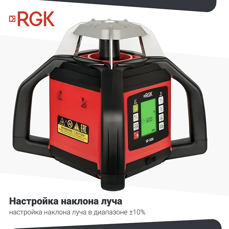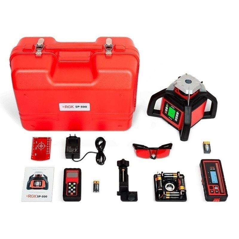 Ротационный нивелир RGK SP-500 – профессиональный инструмент для построения горизонтальной или вертикальной плоскости на дистанции до 900 м с применением приемника. Комплектуется штативом RGK SH-170 и нивелирной рейкой RGK LR-2, образуя готовое к работе решение для точных геодезических измерений. Модель оснащена дисплеем для удобной настройки и отличается высокой автономностью.
