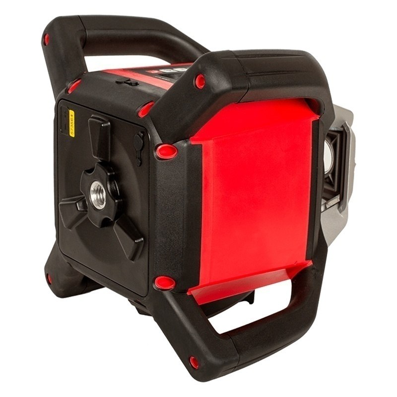 Нивелир излучает красную горизонтальную или вертикальную плоскость с круговой разверткой, точки отвеса и зенита. Прибор имеет минимальную погрешность при построении линий и плоскостей, составляющую 0,1 мм/м. За счет мощного излучателя дальность проецирования в режиме приемника сигналов достигает 500 м в диаметре. Устройство подходит для широкого спектра строительных, монтажных и отделочных работ.