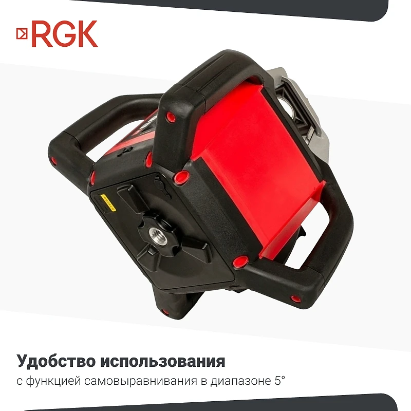 Ротационный лазерный уровень RGK SP-500 подходит для работы как зимой, так и летом. Он рассчитан на мороз до - 20 °C, а также жару до + 50 °C.