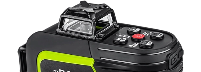 Мощные светодиоды излучают зеленый лазер с длиной волны 515 нм. Яркая световая разметка отлично видна в помещении и на улице. Переключение в импульсный режим позволяет использовать приемник световых сигналов. В этом случае дальность действия прибора достигает 70 метров.