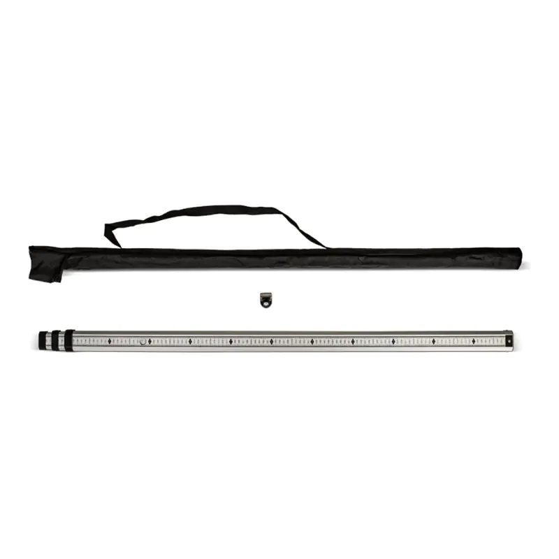 Помимо самого теодолита в практичном пластиковом кейсе вы получаете комплект, в который входят набор для юстировки, нитяной отвес, бленда, аккумулятор и зарядное устройство, а также нивелирная рейка AMO S3 и штатив RGK S6-Z. Рейка состоит из трех секций, имеет Е-градуированную шкалу с одной стороны, миллиметровую — с другой. Для выравнивания предусмотрен встроенный пузырьковый уровень, а для хранения и переноски — чехол. Используя штатив с усиленной площадкой увеличенного размера, вы можете установить теодолит, оптический нивелир, тахеометр, GNSS-приемник или лазерный сканер на удобной для работы высоте вплоть до 170 см.