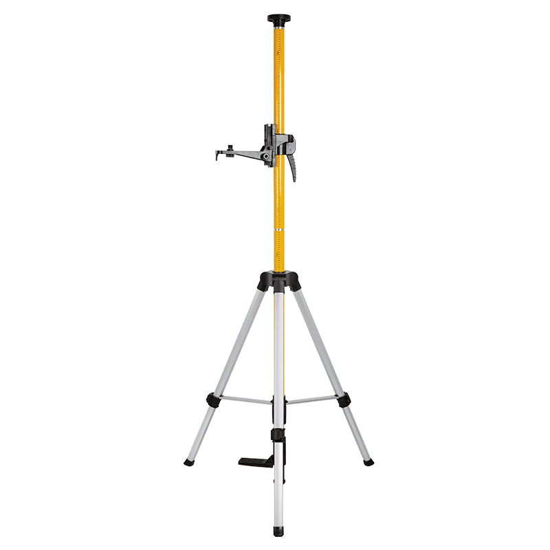 Телескопическая штанга-упор для лазерного нивелира состоит из пяти секций, позволяющих увеличивать ее высоту до 3,6 м. Штатив можно установить на пол с помощью алюминиевой раскладной треноги или в распор. На штанге закреплена подвижная площадка для фиксации лазерного нивелира или других приборов с резьбой 5/8". Для удобства регулировки высоты установки оборудования на штангу нанесена шкала с шагом в 1 см.